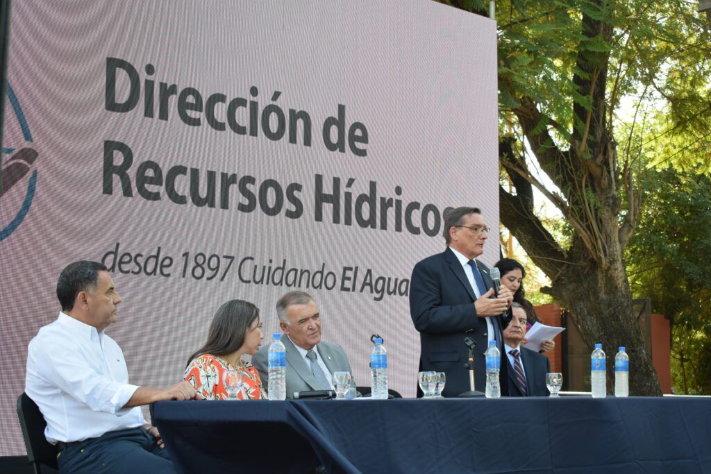 El vicegobernador Osvaldo Jaldo, mencionó: “En este 126° aniversario de la DRH he venido a acompañarlos, y felicitarlos. Hoy se habla mucho de nuestras economías regionales, de la exportación de 150 productos a 160 países, pero hay que ver de donde sale la producción y lo fundamental del agua para la misma, pues quien maneja este recurso es la Dirección de Recursos Hídricos de la Provincia, por eso ponemos en valor su trabajo y su rol. Expresamos la necesidad que tenemos, tanto del sector privado como del sector público, del trabajo mancomunado que tiene como fin mejorar la producción de Tucumán, generar puestos de trabajo y seguir exportando productos.”
