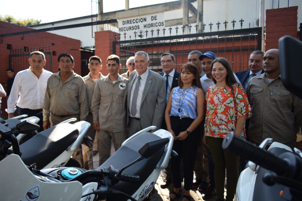 Por su parte, el ministro Simón Padrós, se refirió a la importante incidencia de la DRH en la producción, no solo de la materia prima sino también en la industrialización de la misma para el mercado interno y externo. Además remarcó la importancia del equipo entregado a la Dirección: “La compra y distribución de estas motos va a permitir a la institución brindar un servicio de excelencia. Hay que recorrer más 1700 km de canales en las más de 100.000 h empadronadas que tiene la Provincia”.