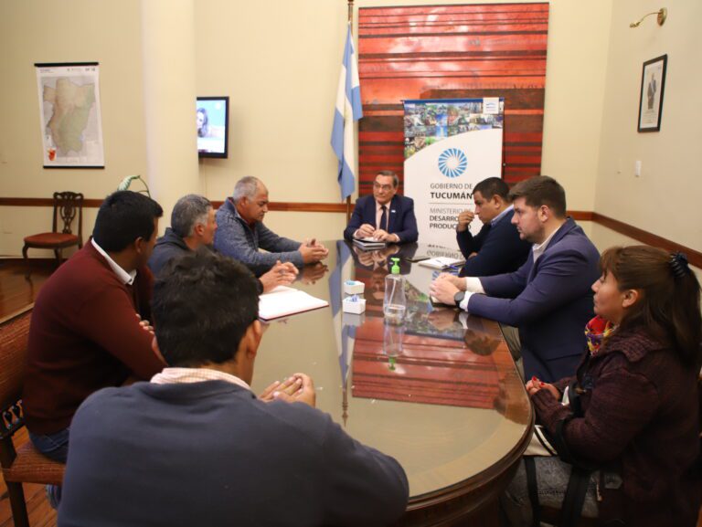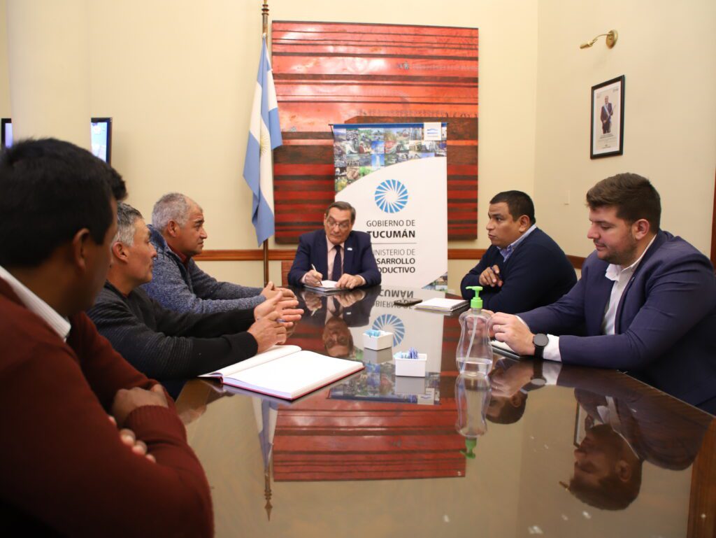 El ministro de Desarrollo Productivo, Álvaro Simón Padrós, recibió en su despacho a representantes de la cooperativa de trabajo y provisión de servicios “La Caña Overa Limitada”, de la localidad de Las Arcas, departamento de Trancas.
