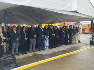 El secretario de Producción, Med. Vet. Eduardo Castro, junto al subsecretario de Medio Ambiente, Abg. Facundo Moreno Majnach, participaron del acto de inicio de
