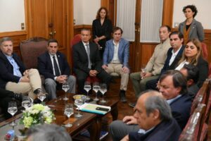 El secretario de Producción, Med. Vet. Eduardo Castro, junto al gobernador de la provincia, CPN. Osvaldo Jaldo, recibieron a una delegación de