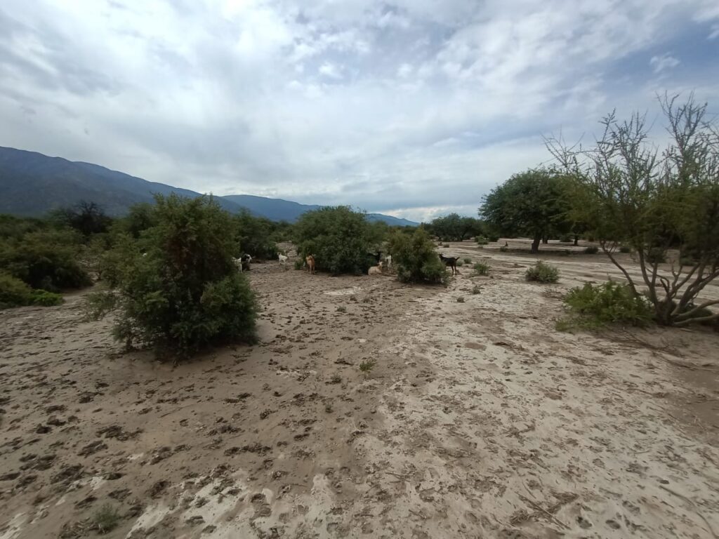El Ministerio de Desarrollo Productivo visitó a productores de El Bañado y Anjuana en la localidad de Colalao del Valle, con el objetivo de recorrer los campos afectados por el desborde del río Santa María, en las cercanías a la Ruta Nacional 40.