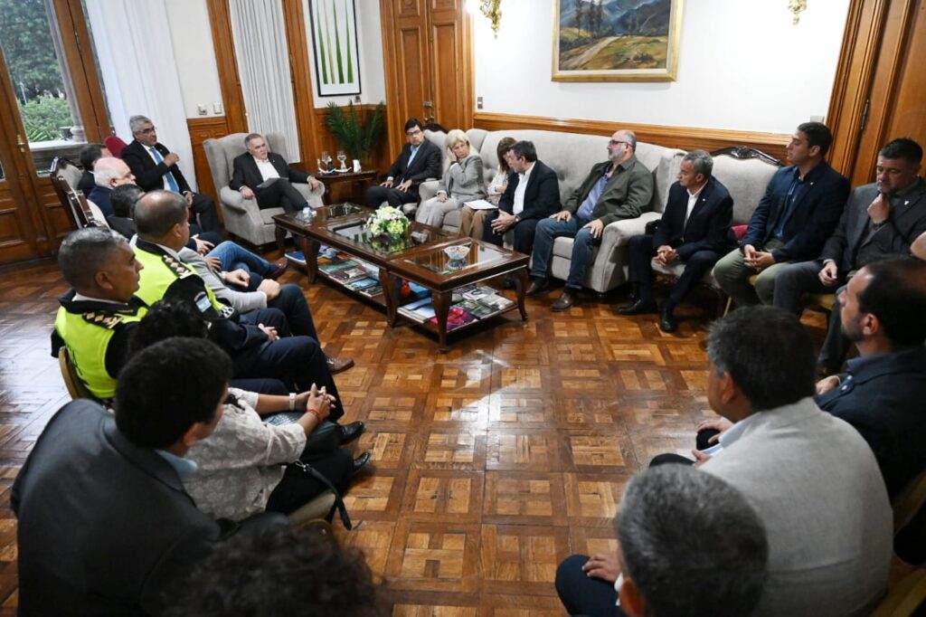 En la reunión estuvieron presentes los ministros de Interior, Darío Monteros, de Seguridad, Eugenio Agüero Gamboa, Desarrollo Social, Federico Masso, de Educación, Susana Montaldo, de Salud, Luis Medina Ruiz, de Obras Públicas, Marcelo Nazur, de Economía Daniel Abad, la Fiscal de Estado, Gilda Pedicone, el secretario General de la Gobernación, Federico Nazur, el Director de Defensa Civil, Ramón Imbert, el jefe de Policía, Joaquín Girvau y el subjefe, Roque Iñygo, entre otros.